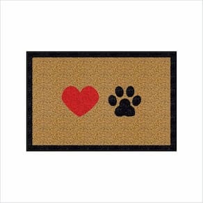 Tapete tipo Capacho Vinil com fibras entrelaçadas e costado emborrachado com arte pinta em tinta vinílica especial.