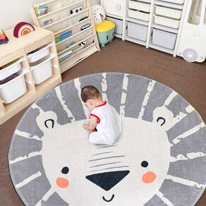 ABREEZE Tapete infantil de 1,2 m, tapete redondo de leão tapete de porta de berçário infantil macio de pelúcia antiderrapante tapete infantil para quarto, sala de estar, sala de jogos, cinza - Material: lã sintética macia e fundo de plástico antiderrapante - Tamanho: diâmetro 120 cm, cerca de 10 mm de espessura. Grande o suficiente para as crianças brincarem e fácil transporte quando dobrado. - Boa qualidade: acabamento fino e trava de borda requintada, boa forma e sem fios de corrida. Superfície macia para bebês e crianças brincarem - Múltiplas funções: Os tapetes são a melhor decoração que é adequada para decoração de casa, tapetes de banheiro da sala de estar, tapetes de área, berçário para engatinhar, tapete de ioga etc. É uma decoração de casa essencial para cobrir o sofá, chão, cadeira ou simplesmente ao lado da sua cama. Perfeitamente adequado para adereços de fotografia. Também é a escolha perfeita como presente de chuveiro, perfeito para o seu quarto de menino ou menina. - Lavável na máquina: Lavar à mão ou totalmente lavado na máquina é bom