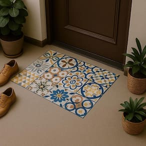 Tapete Porta Entrada Decorativo Antiderrapante 65X45 Azulejo