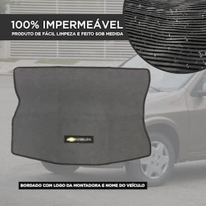 CARACTERÍSTICAS: - Confeccionado em borracha PVC - Base pinada antiderrapante - Tapete de porta malas maleável - Acabamento lateral em viés - Bordado em carpete com o nome do veículo - Acomodação sob medida no porta malas do veículo