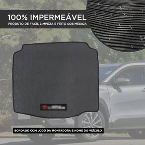 CARACTERÍSTICAS: - Confeccionado em borracha PVC - Base pinada antiderrapante - Tapete de porta malas maleável - Acabamento lateral em viés - Bordado em carpete com o nome do veículo - Acomodação sob medida no porta malas do veículo