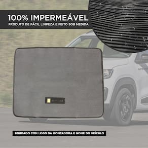 CARACTERÍSTICAS: - Confeccionado em borracha PVC - Base pinada antiderrapante - Tapete de porta malas maleável - Acabamento lateral em viés - Bordado em carpete com o nome do veículo - Acomodação sob medida no porta malas do veículo