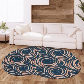 O Cinnamon Roll em Formato Orgânico Bean, imprime movimento e modernidade ao ambiente, tornando-se uma peça de destaque na decoração. Confeccionado com fio tinto de chenille de alta qualidade, oferece toque macio, resistência e base antiderrapante para garantir segurança no dia a dia. Sua paleta sofisticada, em azul-marinho profundo e salmão suave, combina perfeitamente com tons neutros, madeira natural, cinza, off-white e até contrastes mais ousados, como mostarda ou verde-oliva.