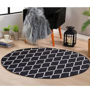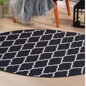 Tapete Redondo 1.00m x1.00m Cami Casa Jacquard Antiderrapante - Cor: Mimi Caramelo Preto