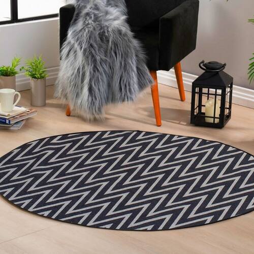 Tapete Redondo 1,40x1,40 Cami Casa Jacquard Antiderrapante - Cor: Chevron