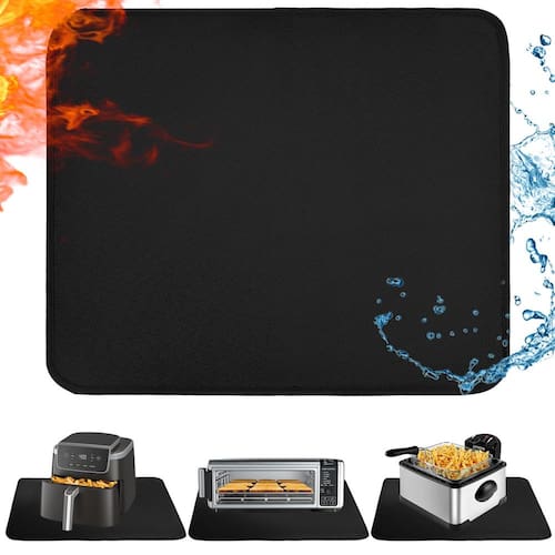 Tapete resistente ao calor para fritadeira a ar, fritadeira, forno, almofadas quentes de 38 x 45 cm para protetor de calor de balcão de cozinha, tapetes de cafeteira para protetor de bancada de - À prova de fogo e resistente ao calor ?Diferente de outros tapetes de silicone, nossos tapetes resistentes ao calor para bancada são feitos de fibra de vidro, revestido de resina de silicone resistente ao calor em ambos os lados, que pode fornecer resistência ao calor de até 550 °C. Nosso tapete resistente ao calor para fritadeira a ar tem bordas finamente costuradas. Não gruda, rasga, enrola ou racha devido ao calor. - ?Proteja sua bancada?Os tapetes resistentes ao calor para bancada podem proteger efetivamente sua bancada contra os danos da dissipação de calor, para evitar que a fritadeira de ar, fritadeira, cafeteira, forno ou panela quente quebre sua bancada de madeira ou mármore. - ?Tapete deslizante para eletrodomésticos pequenos?O tapete de fritadeira a ar é revestido com silicone suave para ajudar você a mover facilmente aparelhos pesados na bancada sem levantá-lo, e o peso da máquina, como máquina de café, espremedor, é pressionado contra o tapete para fornecer uma certa quantidade de atrito, garantir a estabilidade e antiderrapante da máquina. - ?À prova de óleo e fácil de limpar?Nossas almofadas com isolamento térmico não são apenas à prova d'água e à prova de óleo, mas também fáceis de limpar. Após o uso, você só precisa limpar com uma toalha molhada ou limpar com detergente. Após a secagem, você pode dobrar e armazenar, o que é muito conveniente e economiza espaço. - ?Ampla aplicação para seus pequenos aparelhos de cozinha?Ajuste perfeito para a maioria dos seus utensílios de cozinha quentes e aparelhos de alta temperatura, incluindo fritadeira a ar, cafeteira, forno, micro-ondas, batedeira, torradeira, espremedor, panelas e muito mais.