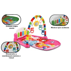 O tapete Infantil de Atividade é colorido e estimula seu bebê à ficar sentado e proporciona maior conforto quando ele estiver de bruços. Os brinquedos são fofinhos e coloridos, cheio de texturas que estimulam o tato e a coordenação motora, pois conta com 5 brinquedos diferentes. Possui luzes e sons divertidos aprimoram as habilidades auditivas do seu bebê, graças ao seu teclado com várias melodias, além de proporcionar a criatividade e percepção visual.