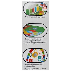 • Embalagem contendo: 1 Tapete, 1 Arco, 1 Piano 5 Brinquedos, sendo 4 mobiles e 1 espelho.