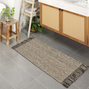 Collive Tapete de corredor de cozinha, 5 x 11 cm, reversível lavável à mão, tapete de corredor de banheiro para entrada, decoração de porta de casa de fazenda de algodão natural/preto para quarto, entrada de cozinha, decoração de porta de chão - Feito para durar: graças à sua fibra de poliéster e algodão, nosso tapete tecido à mão é resistente ao desbotamento e resistente. Uma ótima opção para salas de alto tráfego com animais de estimação e crianças. Devido ao tecido à mão, pode haver erros, as bordas não são tão retas - Lavável na máquina: como um tapete fácil de cuidar, você tem a flexibilidade para vários métodos de limpeza. Lavar à máquina em água fria para uma limpeza profunda e pendurar para secar. Use o seu aspirador sem uma barra de batedor na configuração de menor potência - Textura trançada: nosso tapete de área tecido à mão apresenta uma textura trançada clássica e lindas borlas com nós ao longo das extremidades (o tamanho não inclui 7,6 cm de borla), complementa perfeitamente o estilo chalé, casa de fazenda, boêmio e moderno - Versátil: adequado para decorar sua entrada e utilizado para a porta da frente, porta dos fundos, cozinha, pia do banheiro, quarto, ambientes internos e externos, etc. Surpreenda sua família e amigos com este produto escolhido - Instruções de cuidados: a combinação de diferentes fios coloridos para tapetes, pode parecer ligeiramente diferente dependendo das condições de iluminação. Recomendamos combinar com um tapete para maior conforto e facilidade de cuidado