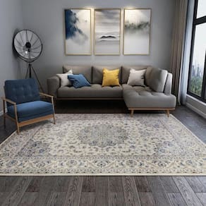 Lindo Tapete Nain Fino Estilo Flat Cor AZUL ou Cru Diversas medidas disponíveis: de 140x200 a 300x400cm Fabricado Na Turquia em Maquina Composição: 100% Poliester Altura aproximada do Pelo: 10mm Marca: Não Informado Ean: 7908006045359