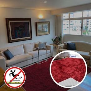 Tapete Sala Quarto e Escritório Peludo Felpudo Shaggy Altura Pelo 40mm Vermelho Casa Dona - 2,0 x 2,4 m