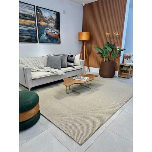 Tapete sarja papilo 08/19 2,00x2,50 Cor: papilo Sarja Transforme seu ambiente com o tapete de sisal sintético Adicione um toque de rusticidade e sofisticação ao seu ambiente com este tapete de sisal sintético de 1,50x2,00m. Ideal para salas de estar, quartos e escritórios, este tapete combina a aparência natural do sisal com a durabilidade e a praticidade do material sintético. Material: Composição: feito de sisal sintético de alta qualidade. Vantagens: combina a aparência natural do sisal com a durabilidade e a facilidade de manutenção do material sintético. Design: Estética: textura rústica e elegante. Acabamento: detalhado e sofisticado, ideal para criar um ambiente acolhedor e elegante. 1. Qual é o material do tapete O tapete é feito de sisal sintético de alta qualidade, combinando a estética natural do sisal com a resistência e praticidade do material sintético. 2. Esse tapete é confortável para pisar Sim graças à base confortex, ele oferece maciez extra sem comprometer a durabilidade. 3. O tapete é adequado para áreas de alto tráfego Sim, ele é altamente resistente ao desgaste, sendo ideal para áreas movimentadas como salas, escritórios e corredores. 4. Quais são as cores disponíveis O tapete está disponível em tons naturais, permitindo fácil combinação com qualquer estilo de decoração. 5. Como faço a limpeza do tapete A manutenção é simples: basta aspirar regularmente e, para limpezas mais profundas, utilizar água e sabão neutro. 6. Esse tapete pode ser em casas com pets e crianças Sim ele é resistente a manchas e fácil de limpar, sendo uma excelente escolha para ambientes com pets e crianças. 7. Esse tapete pode ser em áreas externas Ele foi projetado para ambientes internos, mas pode ser utilizado em áreas cobertas como varandas protegidas. 8. O tapete de sisal sintético solta fiapos Não, diferente do sisal natural, o material sintético não solta fiapos, garantindo mais praticidade e durabilidade. 9. Esse tapete escorrega no chão Não, a base confortex ajuda a mantê-lo firme no chão, mas, se necessário, pode-se usar antiderrapantes adicionais. 10. Esse tapete vale o investimento Sim ele oferece excelente custo-benefício, unindo durabilidade, estilo e facilidade de manutenção a um preço acessível. Base: Tipo: confortex, mais maciez e durabilidade ao seu tapete. Cores disponíveis: Benefício: tons naturais que combinam facilmente com qualquer estilo de decoração. Durabilidade: Resistência: altamente resistente ao desgaste, ideal para áreas de grande circulação. Vida útil: longa duração mesmo em ambientes de uso. Facilidade de limpeza: Manutenção: pode ser facilmente aspirado ou lavado com água e sabão neutro. Resistência a manchas: material resistente a manchas, facilitando a limpeza e manutenção diária. Aplicações: Sala de estar: como peça central, complementando a decoração rústica ou moderna. Quarto: ao lado da cama ou no centro do quarto, adicionando estilo e conforto. Escritório: para criar um ambiente de trabalho elegante e acolhedor. Custo-benefício: Preço: excelente relação entre qualidade e preço. Benefício: oferece durabilidade e estilo sem comprometer o orçamento. Benefícios adicionais: Aparência natural: o tapete de sisal sintético oferece a mesma estética rústica e elegante do sisal natural, mas com maior resistência e durabilidade. Praticidade: ideal para ambientes com pets e crianças, devido à sua facilidade de limpeza e resistência a manchas.