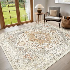 - Design clássico: nosso design de estilo vintage adiciona um toque de elegância à decoração da sua casa. Usando tecnologia de transferência de calor, incluindo um tratamento de envelhecimento para adicionar uma aparência retrô, seu novo tapete bege transformará imediatamente qualquer piso vazio pela casa
