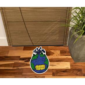 Capacho Vinil com fibras entrelaçadas e costado emborrachado com arte pinta em tinta vinílica especial.