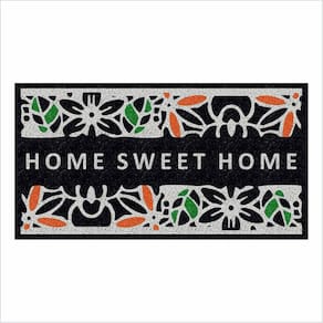 Capacho Vinil com fibras entrelaçadas e costado emborrachado com arte pinta em tinta vinílica especial.