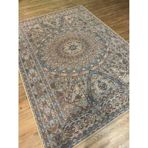 O Tapete Sala Tabriz, com dimensões de de 100x150 ate 200x300 cm disponiveis, é um produto de alta qualidade, com um design clássico e cor bege, marrom e azul.