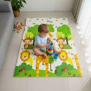Este tapete emborrachado dobrável é feito em XPE (polietileno reticulado) e oferece uma superfície confortável e segura para brincar. Com um design prático e versátil, ele é ideal para o uso em casa, em passeios ou em qualquer lugar que precise de uma área acolchoada.