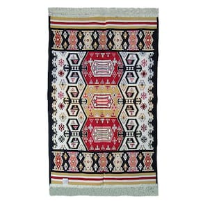 Este tapete em particular apresenta um design encantador, composto por uma mistura harmoniosa de cores vivas e vibrantes. Os tons ricos e intensos incluem vermelho, azul, verde, amarelo e outros matizes atraentes, que dão vida a cada detalhe do padrão. Os motivos geométricos, como losangos, triângulos e formas estilizadas, criam uma estética moderna e visualmente interessante.