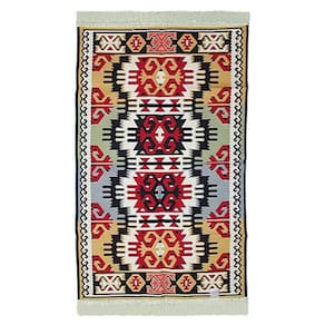 Este tapete em particular apresenta um design encantador, composto por uma mistura harmoniosa de cores vivas e vibrantes. Os tons ricos e intensos incluem vermelho, azul, verde, amarelo e outros matizes atraentes, que dão vida a cada detalhe do padrão. Os motivos geométricos, como losangos, triângulos e formas estilizadas, criam uma estética moderna e visualmente interessante.