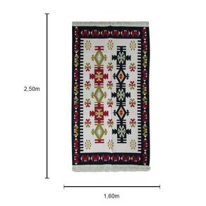 Este tapete em particular apresenta um design encantador, composto por uma mistura harmoniosa de cores vivas e vibrantes. Os tons ricos e intensos incluem vermelho, azul, verde, amarelo e outros matizes atraentes, que dão vida a cada detalhe do padrão. Os motivos geométricos, como losangos, triângulos e formas estilizadas, criam uma estética moderna e visualmente interessante.
