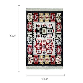 Este tapete em particular apresenta um design encantador, composto por uma mistura harmoniosa de cores vivas e vibrantes. Os tons ricos e intensos incluem vermelho, azul, verde, amarelo e outros matizes atraentes, que dão vida a cada detalhe do padrão. Os motivos geométricos, como losangos, triângulos e formas estilizadas, criam uma estética moderna e visualmente interessante.