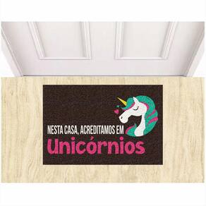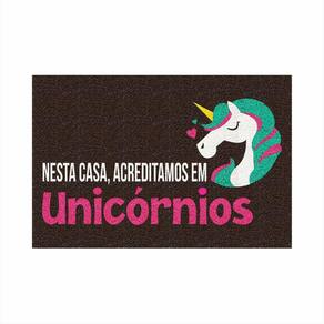 Tapete Vinil Nesta Casa, Acreditamos em Unicórnios 60X40 cm. - Cor.: Marrom