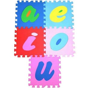 Tapete Vogais em EVA - E.V.A Tapete em EVA colorido, lavável e educativo. Composto por 5 peças de vogais A,E,I,O,U . As vogais são desmontáveis, transformando o Tapete em Eva em um quebra-cabeça. Embalagem plástica incolor com alça e ziper para guardar o brinquedo após o uso. Pode ser como tapete decorativo ou um grande quebra-cabeça. O tapete em eva é muito utilizado em clínicas infantis e escolas para ensinar os numerais para as crianças, incentiva a coordenação motora, concentração, discriminação de cores e formas, noção de espaço e criatividade. Proporcionam conforto e segurança para sua sala de aula ou o quarto da criança. Tamanho de cada peça: 32x32x0.8 cm Tamanho da embalagem do Tapete em Eva Vogais: 33x33x5 cm Idade: a partir de 1 ano. Selo Inmetro: OCAN-BRI-105/17 NM 300/2004