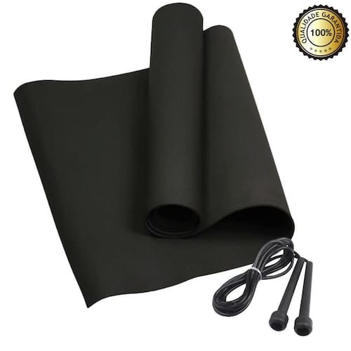 Tapete yoga academia pilates studio mat 1,80x0,50m + corda Cor: preto O tapete de yoga mat esteira de yoga em eva - azul - 1,20m x 0,50m x 5mm, serve de apoio para exercícios físicos de baixo impacto e alongamentos como exercícios de pilates, yoga, abdominais,alongamentos com maior conforto. Desenvolvido com uma densidade adequada para diversas práticas esportivas como yoga, rpg, pilates, abdominais, flexões,exercícios para glúteos, o tapete em eva é ideal também para uso em academias,clínicas, apartamentos, casas e até em locais externos, como parques. Tem comocaracterísticas ser leve, flexível, atóxico e lavável. O tapete yoga mat, é fabricado com eva de alta resistência e durabilidade. Ações e benefícios: - superfície confortável. - material antiderrapante. - lavável, leve e flexível. - pode ser enrolado. - retorna rapidamente à forma . - portátil pode ser levado a qualquer local para realização de exercícios. Indicações: fitness.Yoga.Pilates. Dados técnicos: - material: eva- tamanho: 1,20m x 0,50m x 5mm - cor: azul ou preto - peso: 625g