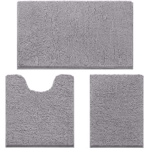 Tapetes de banheiro HOMEIDEAS de 3 peças, conjunto de tapetes de banho de chenille ultramacios antiderrapantes e antiderrapantes (cinza)