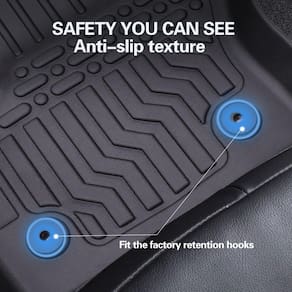 - Segurança aprimorada: o design antiderrapante desses tapetes de escape de 2013 garante que eles permaneçam seguros no lugar, em qualquer possível acidente causado pela troca de tapetes durante a condução. Suas bordas elevadas também ajudam a impedir que qualquer líquido ou detrito se espalhe para outras áreas do carro.