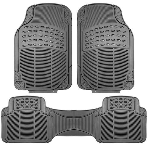 Tapete automotivo para todas condições climáticas (3 peças) FH Group - [Ajuste universal] Estes tapetes de borracha para carro foram cuidadosamente projetados para caber na maioria dos veículos. Estes tapetes são feitos de material flexível que se molda à forma do interior do seu carro, proporcionando um ajuste semipersonalizável. - [Tapetes de piso para carro] O design aparável dos tapetes automotivos universais do FH Group pode caber na maioria dos veículos. Esse recurso permite que você corte no tamanho certo e personalize os tapetes de acordo com as especificações do seu veículo. - [Tapetes de piso de carro CLIMAPROOF] Os tapetes ClimaProof do FH Group fornecerão proteção máxima para todas as condições climáticas para o interior do seu carro, seja com neve, chuva ou lama lá fora. - [Borracha resistente] Construído com borracha de alta qualidade, nossos tapetes para carros para todos os climas são feitos para durar e sempre proteger o interior do seu carro sem deformar ou rachar. - Feito com carpete macio: estes tapetes para todos os fins são feitos de carpete macio, que é excelente para prender sujeira e sujeira e evitar que ela vá a qualquer lugar no seu carro. Este material também melhora o conforto do interior do seu carro.