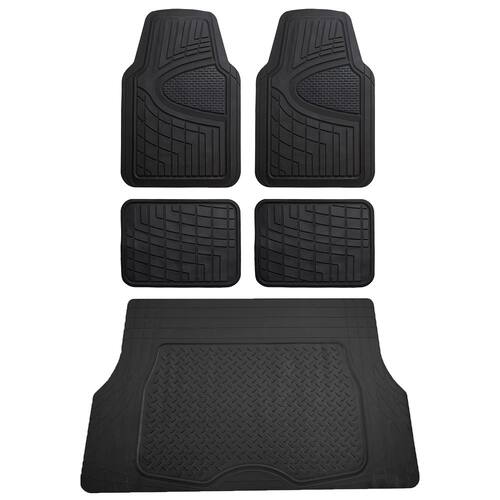 FH Group Tapetes de borracha premium para todos os climas, com forro de carga para todas as estações (preto) com forro de carga para todas as estações (preto) – ajuste universal para carros, caminhões e SUVs - [Ajuste universal] Este conjunto de tapetes de borracha para carro foi cuidadosamente projetado para caber na maioria dos veículos. Estes tapetes são feitos de material flexível que se molda à forma do interior do seu carro, proporcionando um ajuste semipersonalizável. - [Borracha resistente] Construído com borracha de alta qualidade, nossos tapetes para carros para todos os climas são feitos para durar e sempre proteger o interior do seu carro sem deformar ou rachar. - [DIMENSÕES] Frente: 60 cm C x 50 cm L, Traseira: 43 cm C x 33 cm L Tapete de carga 81 cm C x 121 cm L - [Tapetes de piso para carro] O design aparável dos tapetes automotivos universais do FH Group pode caber na maioria dos veículos. Esse recurso permite que você corte no tamanho certo e personalize os tapetes de acordo com as especificações do seu veículo. - [Tapetes de piso de carro CLIMAPROOF] Os tapetes ClimaProof do FH Group fornecerão a máxima proteção para todos os climas para o interior do seu carro, seja com neve, chuva ou lama lá fora. - [Canais profundos] Nossos tapetes automotivos apresentam canais profundos especificamente projetados para evitar que fluidos vazem nos tapetes. Os canais profundos também prendem qualquer lama ou sujeira que entre no seu carro.
