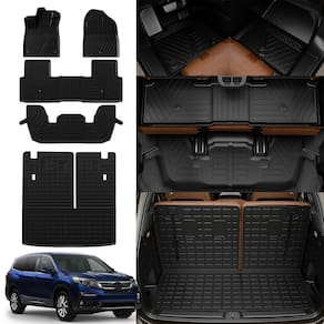 Rongtaod Tapetes de chão compatíveis com Honda Pilot 2023 2024 2025 Tapete de porta-malas de carga forro de carga protetor de capa de assento traseiro acessórios de piloto (tapete de porta-malas com tapete de encosto + tapetes de chão)