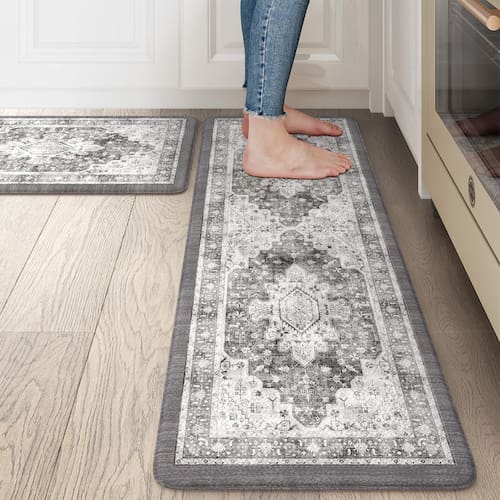 Tapetes de cozinha LEEVAN Memory Foam, antiderrapantes, impermeáveis, 2 peças, cinza claro