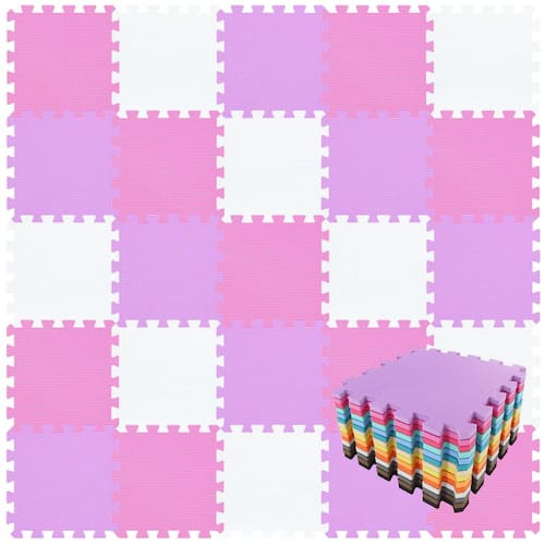vdf - Tamanho do tapete de espuma – 18 tapetes quadrados interligados de 30 cm x 30 cm, a espessura é de 1 cm, cobrindo uma área de 16 pés quadrados após a montagem. - COR DO PISO PROTETORA - Branco, Rosa, Roxo. O tapete de EVA qqpp é feito de matérias-primas de alta qualidade para garantir a cor e o brilho do produto. - Tapete de segurança – Feito de espuma segura, macia e durável. Livre de BPA, ftalatos, , ecológico e não tóxico. - TAPETE DE INTERLOQUEIO MULTIFUNCIONAL - utilizado para proteger o chão, construir uma área de brincadeiras confortável e segura para bebês, como um tapete de proteção para ioga, exercícios, etc. Adequado para salas de estar, quartos infantis, berçários, ginásios, garagens, porões, etc. - Fácil de limpar e montar – pode ser facilmente limpo com um pano úmido e sabão neutro, a função de intertravamento e portabilidade tornam muito fácil de montar.