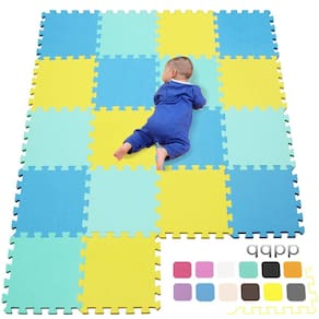 qqpp Tapetes de borracha EVA 18 azulejos interligados de espuma de quebra-cabeça - Tapete de brincar de bebê para brincar | Tapete de exercício para treino em casa. Amarelo, azul, verde. QC-EGHb18N - Tamanho do tapete de espuma – 18 tapetes quadrados interligados de 30 cm x 30 cm, a espessura é de 1 cm, cobrindo uma área de 16 pés quadrados após a montagem. - COR DO PISO PROTETORA - Amarelo, Azul, Verde. O tapete de EVA qqpp é feito de matérias-primas de alta qualidade para garantir a cor e o brilho do produto. - Tapete de segurança – Feito de espuma segura, macia e durável. Livre de BPA, ftalatos, , ecológico e não tóxico. - TAPETE DE INTERLOQUEIO MULTIFUNCIONAL - utilizado para proteger o chão, construir uma área de brincadeiras confortável e segura para bebês, como um tapete de proteção para ioga, exercícios, etc. Adequado para salas de estar, quartos infantis, berçários, ginásios, garagens, porões, etc. - Fácil de limpar e montar – pode ser facilmente limpo com um pano úmido e sabão neutro, a função de intertravamento e portabilidade tornam muito fácil de montar.