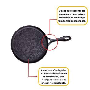Com a nossa tapioqueira você tem todos os benefícios do ferro fundido, como retenção e distribuição uniforme do calor e com a arte em relevo no fundo - uma exclusividade do Mocotó - sua tapioca fica super crocante por conta do aumento da superfície e também da textura do próprio material. Você nunca mais vai querer usar outra frigideira!