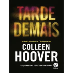 Da autora best-seller mundial Colleen Hoover, o sucesso Tarde demais agora em uma edição completamente revista e atualizada pela autora, com novos capítulos e trechos inéditos. Sloan faria de tudo para proteger aqueles que ama. E ela faz, todos os dias. Presa em um relacionamento com Asa Jackson, um traficante imprevisível, Sloan fará o que for preciso para que ela e seu irmão continuem vivos. O que inclui precisar enfrentar situações que jamais sonhou precisar passar... Até que ela consiga encontrar uma maneira de sair dessa. Nada atravessará seu caminho. Nada, exceto Carter. Sloan é a melhor coisa que já aconteceu a Asa. E, se perguntar a ele, Asa também é a melhor coisa que já aconteceu a Sloan. Apesar de a garota não aprovar seu estilo de vida arriscado, Asa vai fazer de tudo para permanecer sempre um passo à frente em seus negócios e em seu relacionamento com Sloan. Nada atravessará seu caminho. Nada, exceto Carter. Ean: 9786559813858