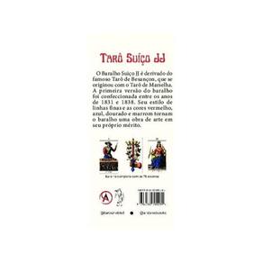 O Baralho Suiço JJ é derivado do famoso Tarô de Besançon, que se originou com o Tarô de Marselha. A primeira versão do baralho foi confeccionada entre os anos de 1831 e 1838. Seu estilo de linhas finas e as cores vermelho, azul, dourado e marrom tornam o baralho uma obra de arte em seu próprio mérito. Marca: Não Informado