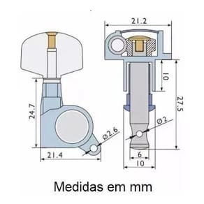 Tarraxa blindada para violao aço guitarra 3+3 custom sound Todos produtos são com e do fabricante Prazos de troca e devolução: - o consumidor tem direto a troca ou devolução do produto com defeito dentro de 7 dias corridos, apos esse prazo é acionada a do fabricante - devoluções por arrependimento deve serm feitas com embalagem, todos itens que acompanham produto, e não deve haver havarias no produto, marcas de uso etc. Por isso tenha certeza do produto que está comprando o prazo para devoluçoes é de 7 dias Somos autorizada das marcas anunciadas - todos produtos são testados antes do envio - regulagem em instrumentos de corda são cortesia, não se aplicam bem como encordoamentos arrebentados não são cobertos na - cores dos produtos podem ter variação da foto para o produto real, principalmente violões em que as madeira tem variaçoes de cor e veios da madeira. Descrição do produto: Jogo 6 peças tarraxa ''tarracha'' blindada para violões tagima, strinberg, giannini etc.. Também é compatível com alguns modelos de guitarras. - para peças unitárias / fracionadas solicite-nos o link para a compra. Especificações: Instrumento: guitarra e violão Trava: não. Disposição das tarraxas 3+3 As tarraxas são fabricadas com os melhores materiais e precisão total para que seu instrumento esteja sempre afinado. Itens inclusos: 01 - jogo de tarraxa blindada violão ou guitarra com parafusos. Ean: 7898672371329