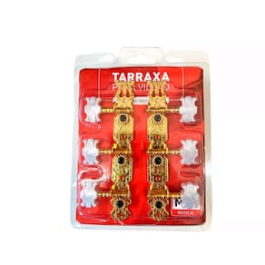 Tarraxa para Violão - Pino Pino Marca: MXTModelo 54.5.00199 Cordas: Aço / Nylon Cor: Dourado Material: Ferro, ABS Disposição:: 3+3 Orientação: Direita/Esquerda Distancia entre os furos: aprox. 3,5 cmDistancia entre os pinos : aprox. 3,0 cm Peso: 150 g