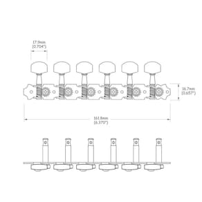 Tarraxas para Guitarra com acabamento niquelado, 6 tarraxas em linha, estilo Schaller, Spirit Guitar Parts - J32-NI-R6.