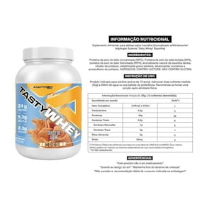 Tasty Whey Dulce De Leche 2 Lbs AdaptogenTASTY WHEY é uma mistura de alta proteína que proporciona uma nutrição excepcional. Ela promove o bem-estar através da utilização de uma combinação patenteada de proteínas do soro do leite excepcionalmente de alta qualidade, juntamente com gorduras saudáveis, carboidratos e micronutrientes e com um sabor incrível também Whey Protein concentrada de alta qualidade que é baixa em carboidratos e açúcares. Proteína de alto valor biológico e de excelente absorção. Sabor imbatível e incomparável.O TASTY WHEY possui 24g de proteína, e o melhor, continua a proteína mais saborosa Com excelente absorção, que auxilia no crescimento muscular. É uma ótima opção para quem gosta de criar receitas saudáveis