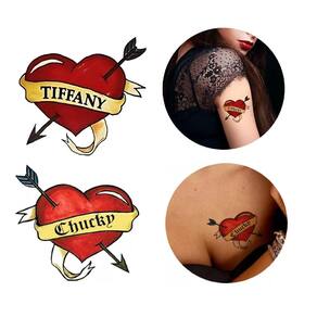 Tatoo temporária 2 corações chucky e Tiffani casal halloween