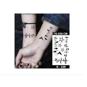 Tatoo Temporária Delicada Cartela Vários Desenhos Modelos Cor: Preto Pássaros e musica Tatuagem Temporária - Tattoo Temporária