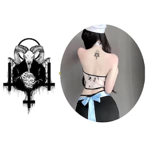 Tatoo temporária diabólica cruz invertida chifres halloween Adicione um toque aterrorizante ao seu visual de Halloween com nossa Tatuagem Temporária Diabólica, que apresenta uma cruz invertida adornada com chifres Este design impactante é perfeito para quem deseja incorporar um elemento sombrio e ousado ao seu traje, capturando a essência do terror de uma maneira estilosa. Ideal para festas de Halloween, eventos de Cosplay ou qualquer celebração temática que peça um visual mais ousado, essa tatuagem temporária é fácil de aplicar e pode ser colocada em diversas partes do corpo, como braços, pernas ou no rosto. A aplicação é rápida e a remoção é simples, permitindo que você experimente diferentes looks sempre que desejar. Não perca a chance de garantir sua Tatuagem Temporária Diabólica com Cruz Invertida e Chifres e faça uma declaração ousada neste Halloween Marca: Não Informado