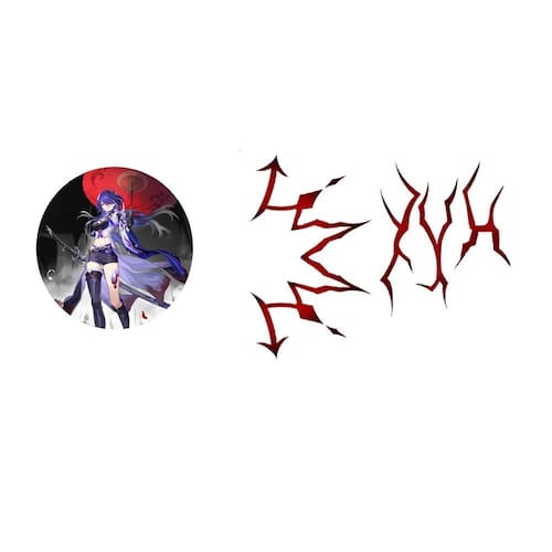 Tatuagem temporária Acheron de Honkai Star Rail cosplay Cor: Preto 2 Tatuagem temporária para cosplay de Acheron, uma personagem jogável de Honkai: Star Rail. Uma andarilha que afirma ser uma Vigia da Galáxia e anda sozinha pelo cosmos..