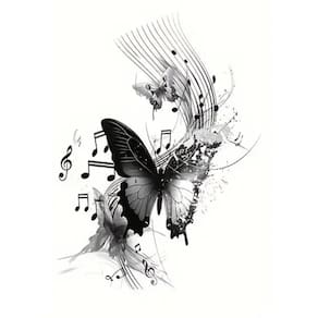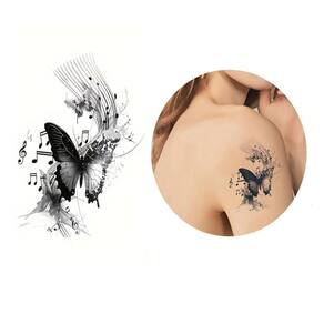 Tatuagem temporária borboletas musica notas modelo Ótimo recurso para ver como vai ficar antes de fazer uma tatuagem permanente.