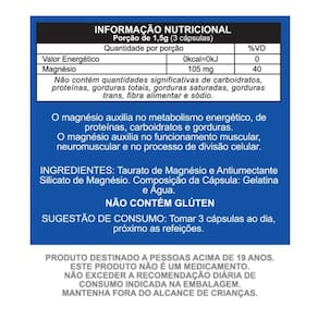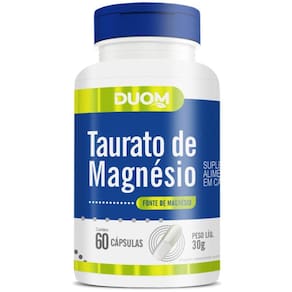 Taurato de magnésio fonte de magnésio 60 cápsulas - duom Taurato de magnésio fonte de magnésio 60 cápsulas - duom - descrição - indústria do corpoO magnésio taurato em cápsulas é um suplemento alimentar a base do aminoácido taurina e magnésio quelato. Composto pelo mineral magnésio em uma das suas formas mais biodisponíveis e o aminoácido taurina que é condicionalmente essencial para o organismo.O que é magnésio tauratoO mineral magnésio exerce muitas funções bioquímicas principalmente relacionadas às funções do sistema nervoso e do sistema cardiovascular. O magnésio e a taurina possuem ação similar em alguns tecidos alvo, por isso, o motivo de combiná-los em um único suplemento.Além de corrigir a deficiência de magnésio, o magnésio associado à taurina pode atuar de forma sinérgica trazendo benefícios complementares à saúde. Geralmente a magnésio taurato é indicado para suprir carências nutricionais e atuar nas funções cardíacas e do sistema nervoso. A importância da taurinaA taurina é um aminoácido condicionalmente essencial que pode ser produzido pelo organismo a partir dos aminoácidos cisteína e metionina e que também precisa da presença de vitamina b6.A taurina é o segundo aminoácido mais abundante no organismo, muito encontrado no fluido intracelular, no reservatório onde fica os aminoácidos livres, no coração, leucócitos, retina, sistema nervoso central e principalmente no músculo.Ela tem atuação na comunicação nervosa, no sistema cardiovascular, regulando certas funções e fluidos cardíacos e tem ação antioxidante. - benefícios - indústria do corpo- tem excelente biodisponibilidade: nesta forma o magnésio é melhor absorvido;- suplemento seguro: possui doses seguras tanto para o magnésio quanto para a taurina;- têm ação sinérgica: possuem ação similar em alguns tecidos alvo aumentando a eficácia de atuação quando associados;- metabolismo energético;- metabolismo de proteínas - carboidratos e gorduras;- funcionamento neuromuscular e muscular;- combate dores no corpo e nas articulações;- auxilia no transporte de cálcio para ossos;- auxilia no combate as câimbras;- excelente na luta contra as dores fibromialgia;- auxilia no combate dores de cabeça e enxaqueca;- auxilia a regular o coração: batimentos cardíacos;- melhorar o desempenho físico, porque é importante para a contração muscular. - sugestão de uso - indústria do corpoTomar 3 cápsulas ao dia, próximo as refeições. - tabela nutricional - indústria do corpo- anexo nas imagens - - composição - indústria do corpo- anexo nas imagens - - recomendações - indústria do corpo- anexo nas imagens - - dados técnicos - indústria do corpoMarca - duom.Conteúdo líquido por frasco - 60 cápsulas.Rendimento total - 20 doses/porções.Peso líquido total - 30g.Peso aproximado produto + embalagem - 100g.Código de barras (ean) - 7898665752227.Registro anvisa - dispensado de registro de acordo com a resolução da rdc 27/2010 e rdc 240/2018 da anvisa.Dimensões do produto - largura: 7,5 cm; altura: 13 cm; comprimento: 7,5 cm.Dimensões da embalagem/pacote - largura: 13 cm; altura: 7 cm; comprimento: 16 cm. - itens do anúncio - indústria do corpo- 1 unidade do produto: taurato de magnésio fonte de magnésio 60 cápsulas - duomTotal - 60 cápsulas.