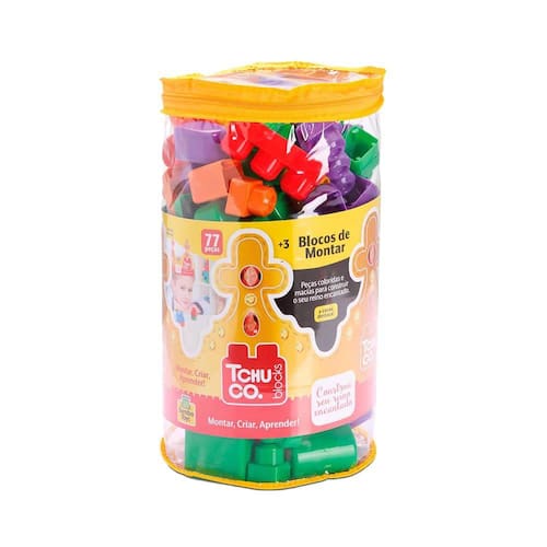 Os blocos de montar Tchuco Blocks Samba Toys são divertidos e proporcionam interação, além de estimular as crianças na percepção de cores, tamanhos, espaços físicos e concentração. São 77 peças de fácil encaixe para crianças soltarem a criatividade e montarem com formas e tamanhos distintos.